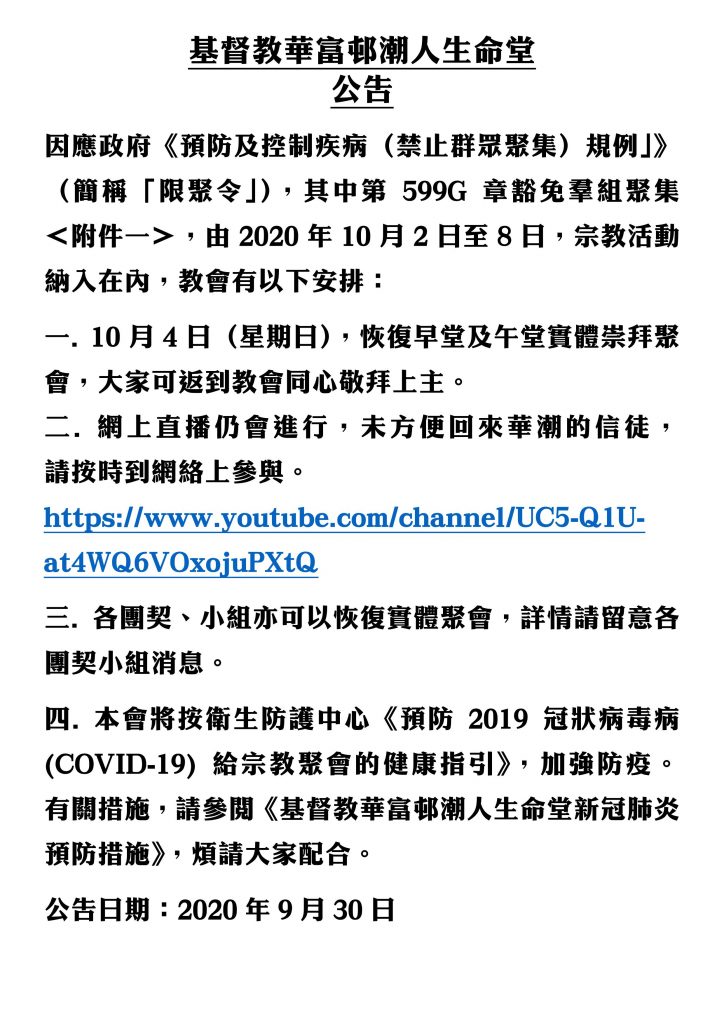 基督教華富邨潮人生命堂聚會消息(2020.09.30)_01
